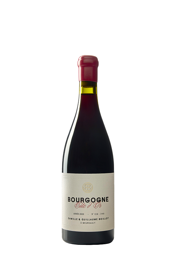 Delicadeza, frescor e pureza de fruta definem este Bourgogne Pinot Noir autêntico e expressivo, produzido na renomada Côte de Beaune por Camille & Guillaume Boillot, jovens viticultores comprometidos com práticas sustentáveis e uma vinificação minimalista.