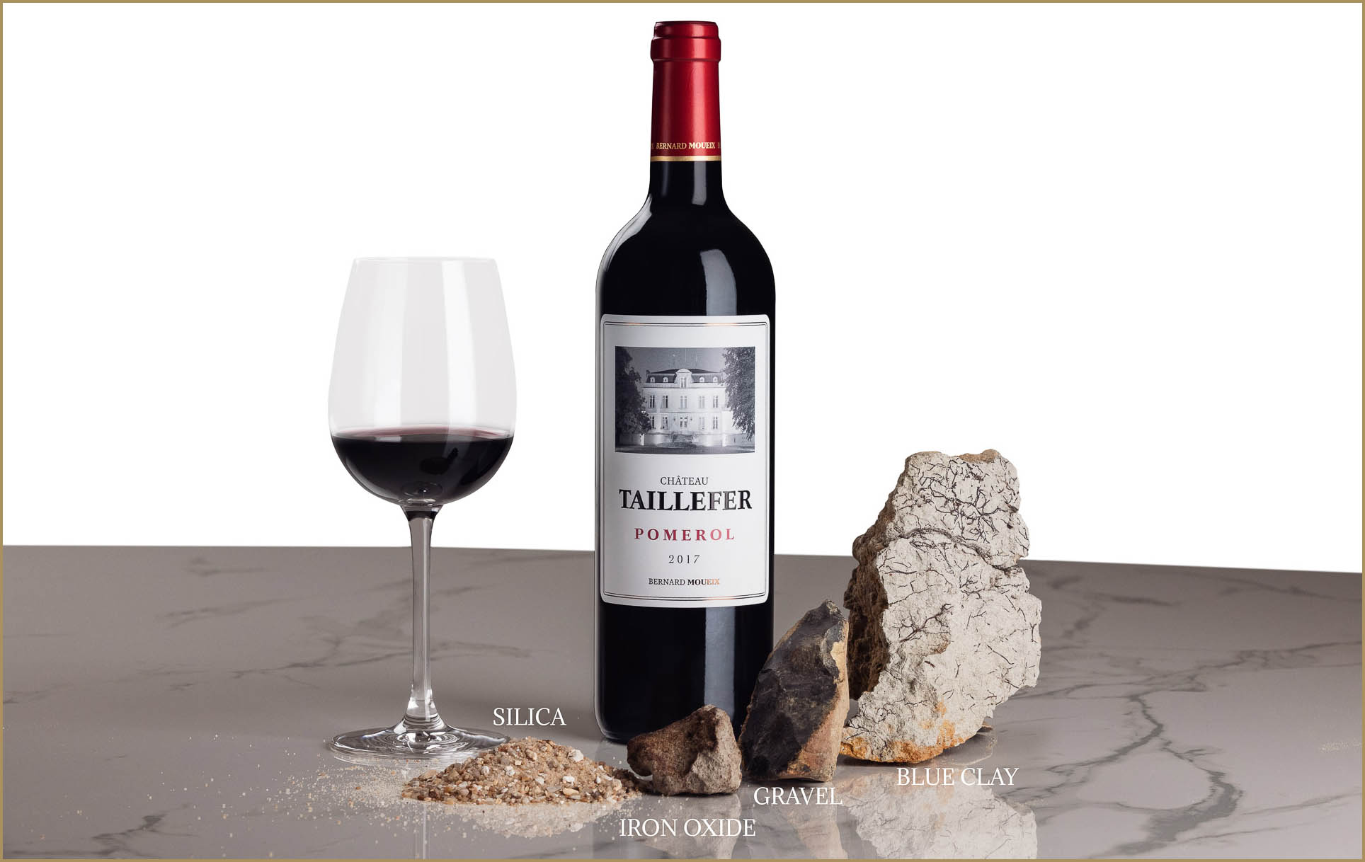 O solo desta região é rico em oxido de ferro, característica típica e fundamental do terroir de Pomerol. Fato que inspirou o nome da propriedade: Os mais velhos dizem que o arado “esculpiu o ferro” (“Taillefer” em francês, que em uma tradução mais exata significa “cortar ferro”). Este alto teor de ferro confere complexidade ao vinho, juntamente com a mineralidade, aromas de trufas e violetas.